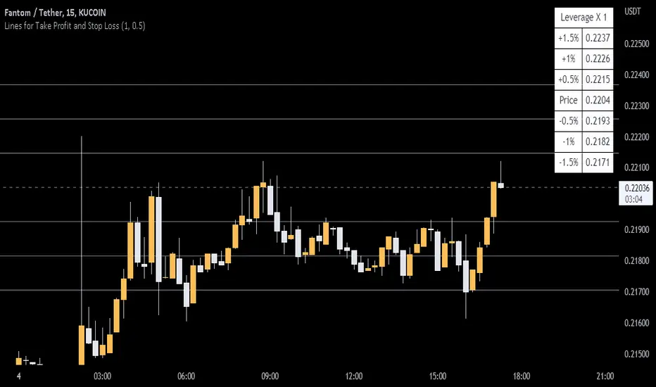 This script calculates and draws six “profit and risk lines” (levels) that show the change in percentage from the current price. The values are also shown in a table, to help you get a quick overview of risk before you trade.
