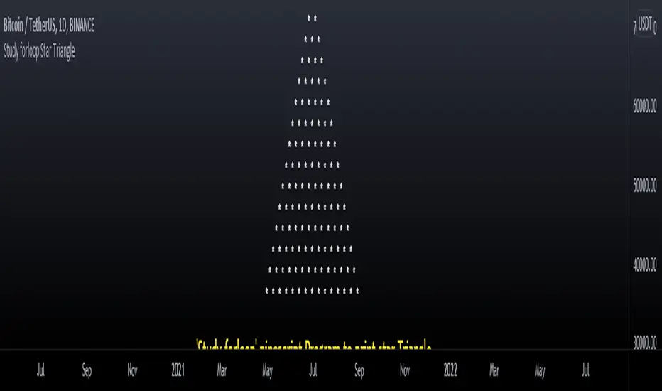 'Study forloop' pinescript Program to print star Triangle