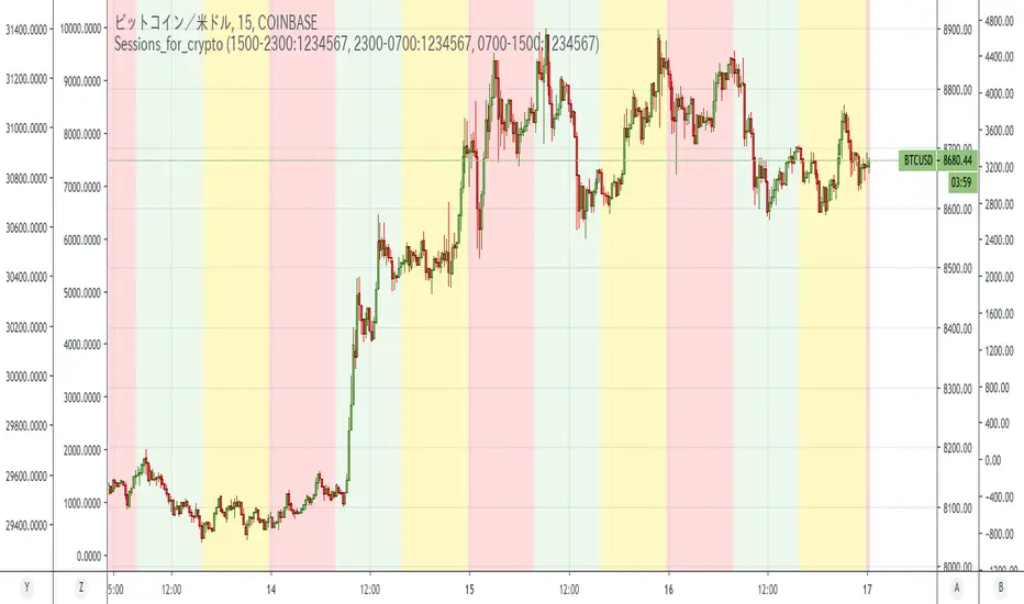 なのですが、時間帯を色分けしてくれる丁度よいインジがなかったので作りました。