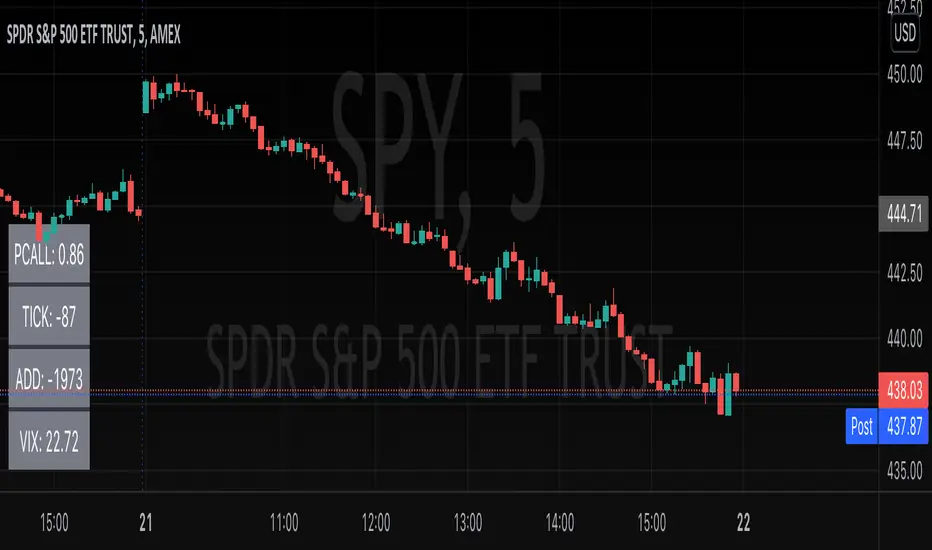 Displays the Ticks, Advance Decline and th PCALL in the bottom corner.