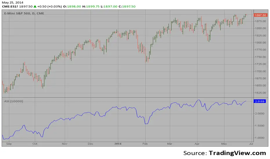 The Accumulation Swing Index is a cumulative total of the Swing Index.