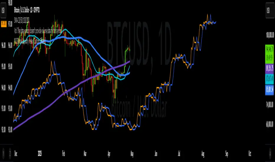 Plots the global M2 money supply alongside price, with two user-configurable forward shifts to help you anticipate macro-driven moves in BTC (or any asset).