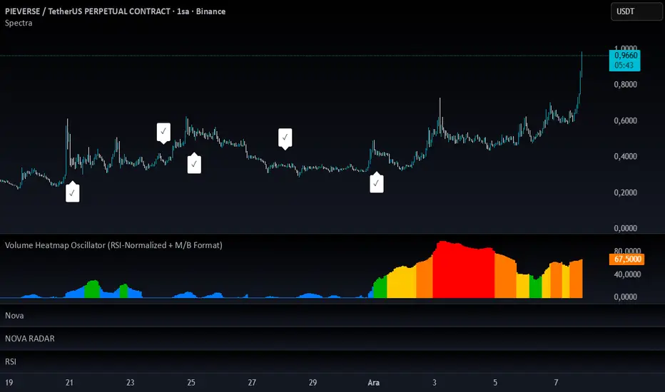 Volume Heatmap Oscillator transforms raw volume into a 1–100 normalized strength scale, clearly showing where real volume enters the market instead of just displaying basic volume bars.