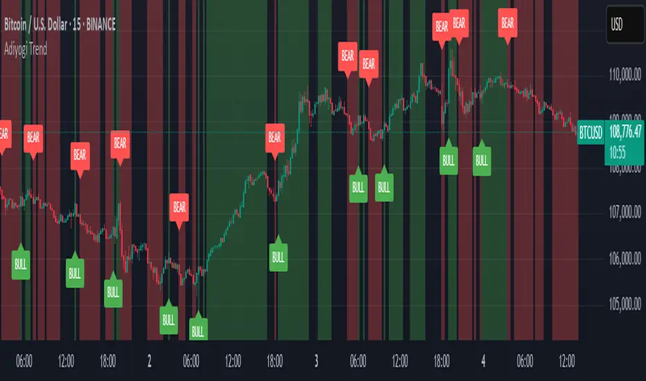 “Adiyogi” Trend is a powerful, non-intrusive trend detection system built for traders who seek clarity, discipline, and alignment with true market flow. Inspired by the meditative stillness of Adiyogi and the need for mindful, high-probability decisions, this tool offers a clean and intuitive visual guide to trending environments — without cluttering the chart or pushing forced trades.
