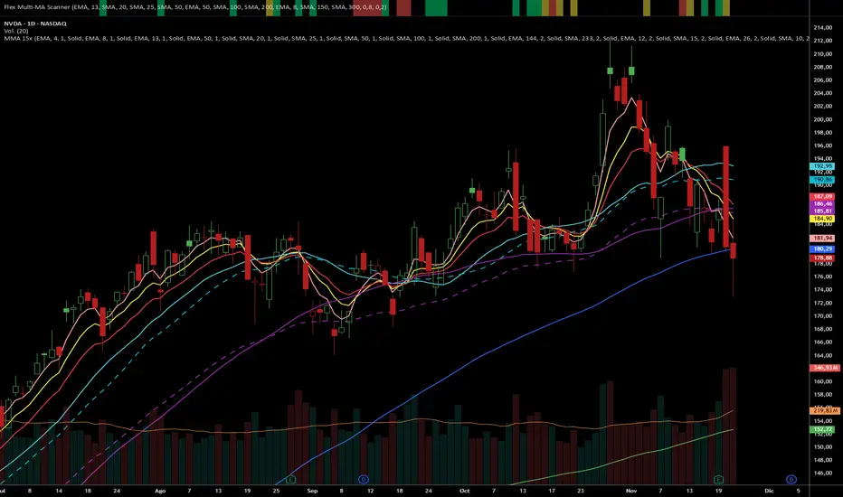 Select up to 10 moving averages (SMA/EMA) and the system automatically identifies the most relevant one. You'll get clear, color-coded signals: