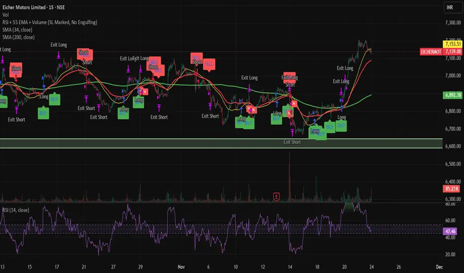 RSI + 55 EMA + Volume (SL Marked, No Engulfing)