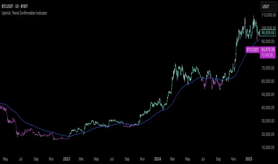 The "Uptrick: Trend Confirmation Indicator" stands as an exceptional tool for traders seeking reliable confirmation of market trends. This indicator integrates multiple technical analysis components to provide clear signals for trend direction, aiding traders in making well-informed trading decisions with confidence.