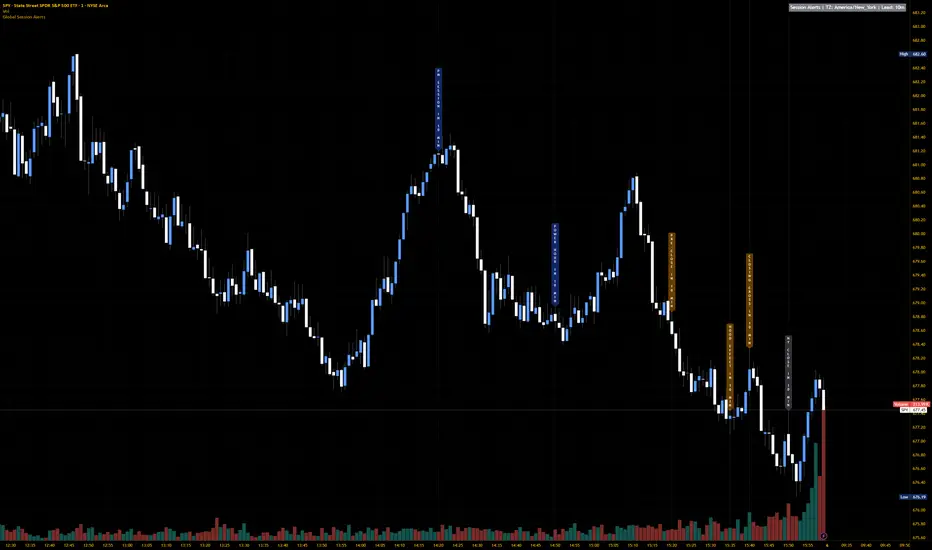 Clean, intraday session and structure alerts plotted directly on your chart: X minutes before the event, fully configurable.