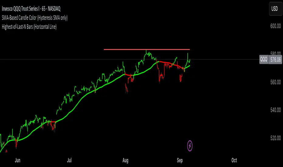 Marks highest price over last amount of bars with horizontal line