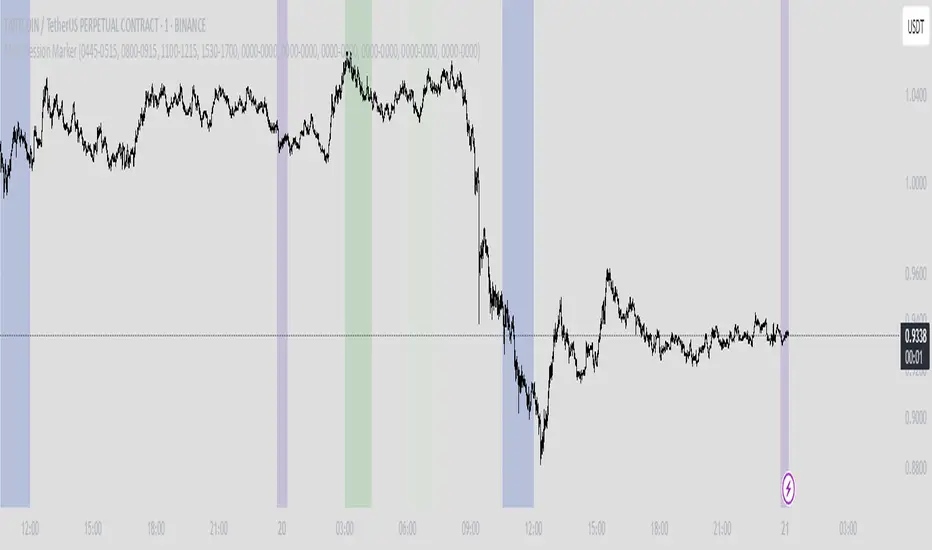 Multi-Session Marker is a powerful and flexible tool for visually highlighting up to 15 custom trading sessions directly on your TradingView chart’s background.Key Features: