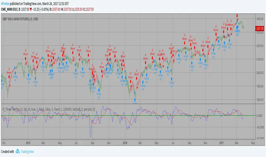 The second plot is an 16 day simple moving average of the 3-10 Oscillator.