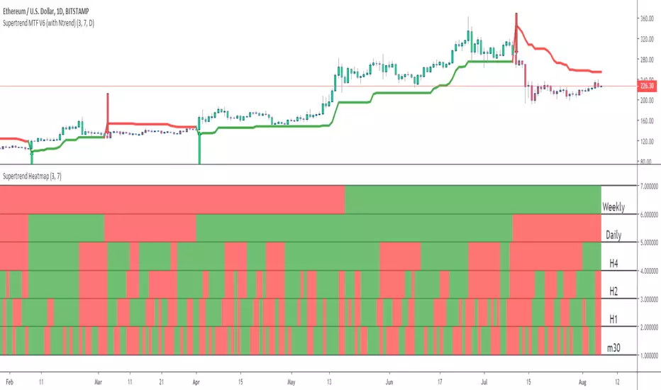 Basically, there is a line per timeframe and whenever the supertrend changes color in a given timeframe, it will get updated into the heatmap as well !! #amazing #awesome #so#coool#bro