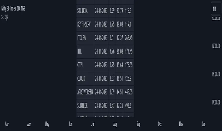 This is a Live Screener for my previous Alpha & Beta indicator, which filters stocks lively based on the given values.
