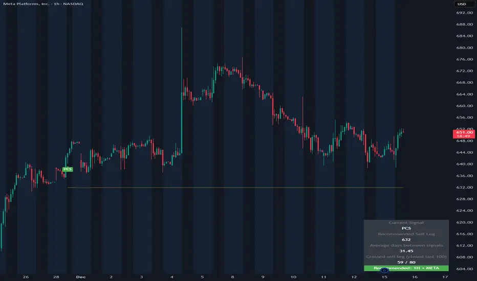 When a signal triggers, the script calculates a recommended short strike using recent pivot structure and displays it visually on the chart. This level is intended as a reference point for structuring a credit spread, not as an execution instruction.