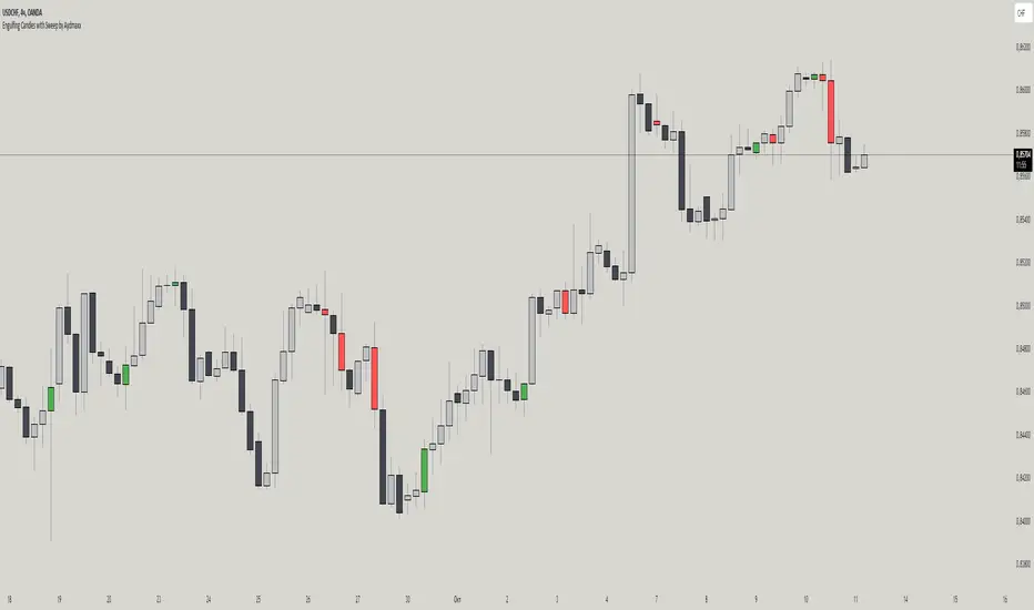 Engulfing Candles with Sweep by AydmaxxThis indicator identifies bullish and bearish engulfing patterns with a sweep and now includes enhanced features to make it even more powerful and customizable for traders.