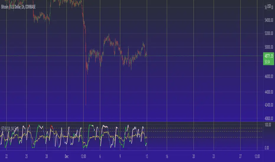 *Note* - Do some back-testing with this indicator to get a good feel for how it works. Due diligence is to observe it in bear, bull, and sideways trends, as they all produce unique outputs. Thankfully, the variations in behavior show some clear patterns through this indicator, adding to its ability to identify larger trends. For example, during the types of sell-offs and liquidation events that are oh so common in crypto, even the standard RSI may need to go through several oscillations before "resetting" and identifying a true bottom. When this occurs, RSI will be weak so the stochastic line will be green for much longer as it oscillates. A Stochastic line that reaches high levels but remains green is a good way to tell that another drop is coming, especially when this occurs on time frames in the several hours range. This is clearly useful during those trying times.