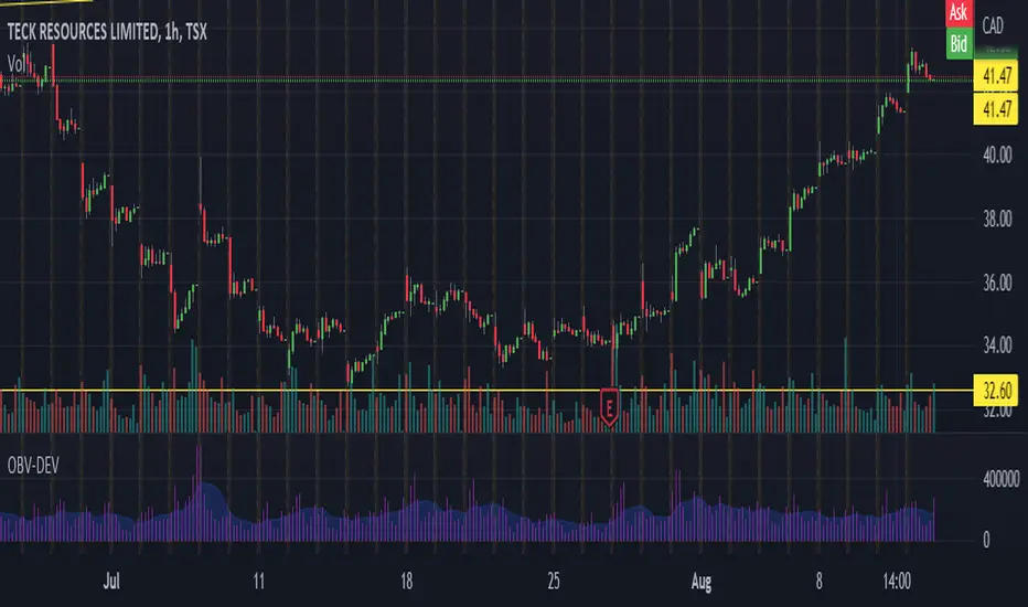 The objective of this indicator is to be a leading indicator that can detect a large price change before it happens. It is based on the On Balance Volume (OBV) indicator, which is a leading indicator based on the premise that a large change in volume often precedes a large price change. This indicator charts the N-Period deviation of the OBV data and displays it as a histogram. This is overlayed on an area chart of the M-Period SMA of the histogram data. This combination helps to visually enhance the pattern that signifies that a jump in price is about to happen.