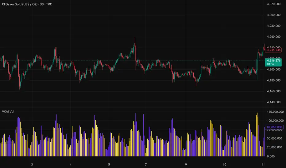 VCAI Volume Lite is a clean, modern take on volume analysis designed for traders who want a clearer read on participation without loading multiple indicators.