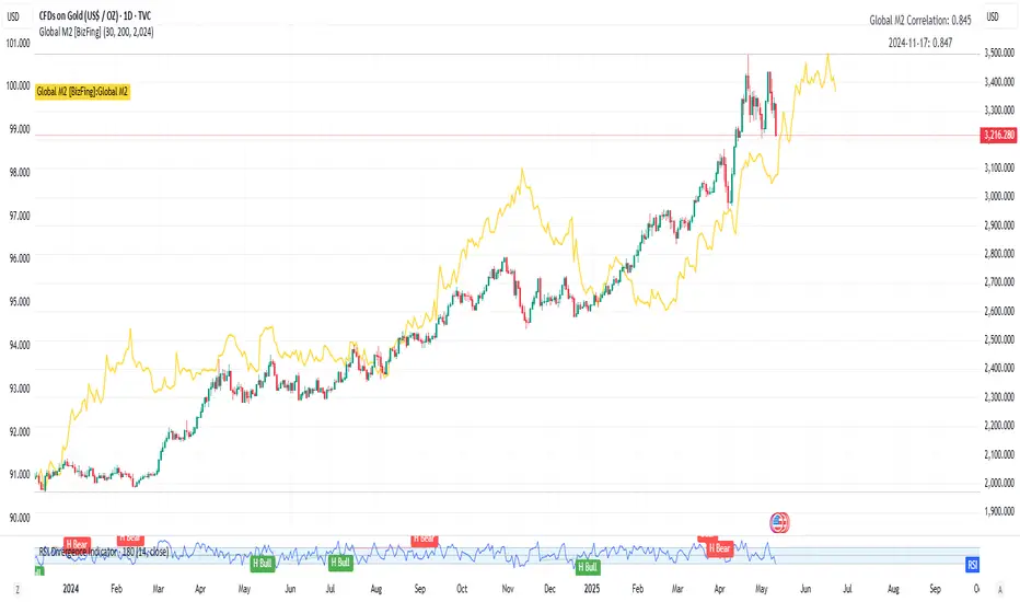 This is an indicator designed to show the correlation between the global M2 money supply and Bitcoin.