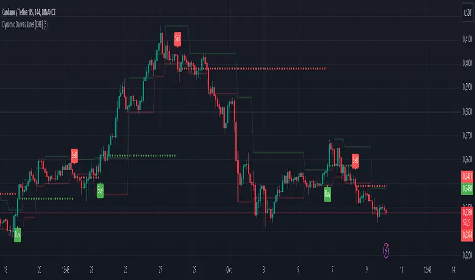 Dynamic Darvas Lines [CHE] is an advanced trading indicator designed for traders seeking to enhance their market analysis and decision-making process. Building upon the classic Darvas Box theory, this indicator introduces dynamic zone detection and comprehensive customization features, making it an indispensable tool for both novice and experienced traders.