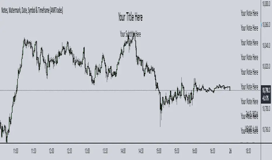 "Note, Watermark, Date, Symbol & Timeframe " is a simple yet powerful TradingView indicator designed to provide essential information directly on your trading charts.Key Features: