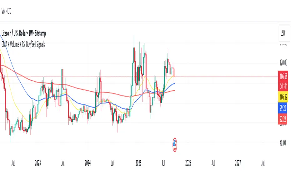 indicator("EMA + Volume + RSI Buy/Sell Signals", overlay=true)
