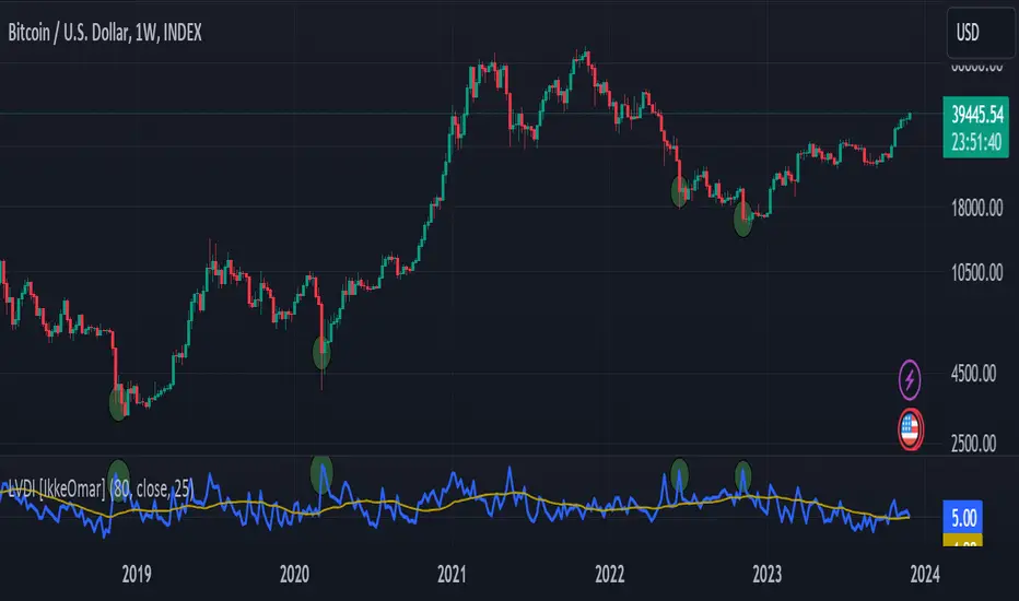 The LVDI is a Mean-Reversion Indicator. it doesn't detect trends and does not give a signal per se.