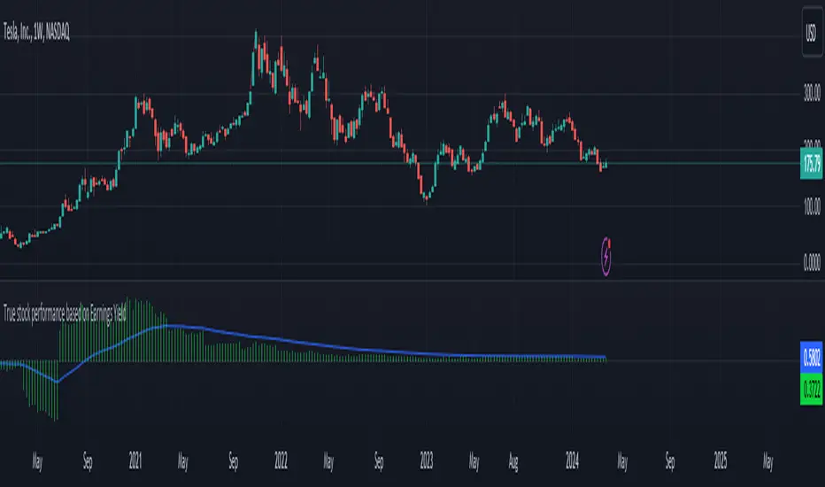 Earnings Yield is simply the percentage of Earnings Per Share in relation to the stock price. Alone, it's a great fundamental indicator to analyze a company. But I wanted to use it in another way and got tired of using the calculator all the time so that's why I made this indicator.