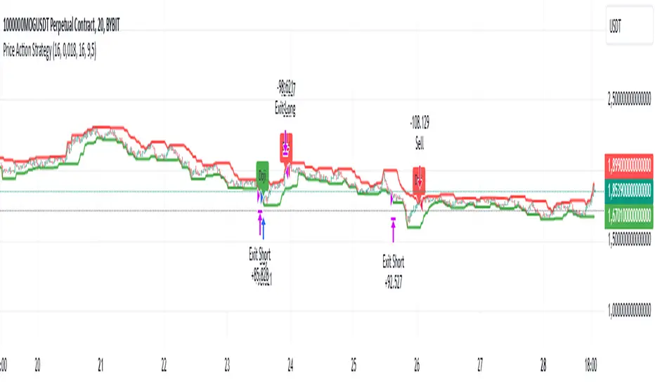 The **Price Action Strategy** is a tool designed to capture potential market reversals by utilizing classic reversal candlestick patterns such as Hammer, Shooting Star, Doji, and Pin Bar near dinamic support and resistance levels.
