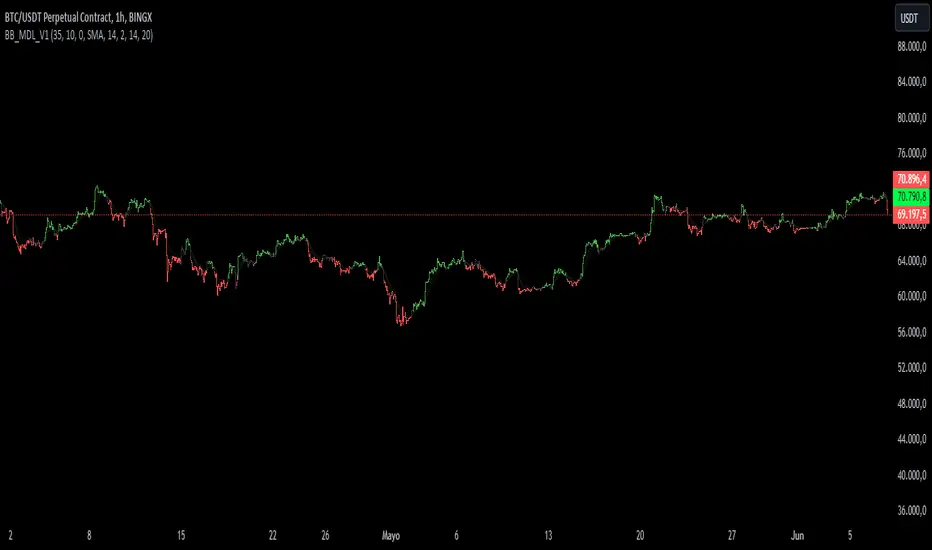 Simple indicator that is based on the average line of the bollinger bands and the exponential average of 200 periods.The customizable variable is bollinger bands length, currently the default is 35, you can tweak it to your liking and see how trend identification changes.