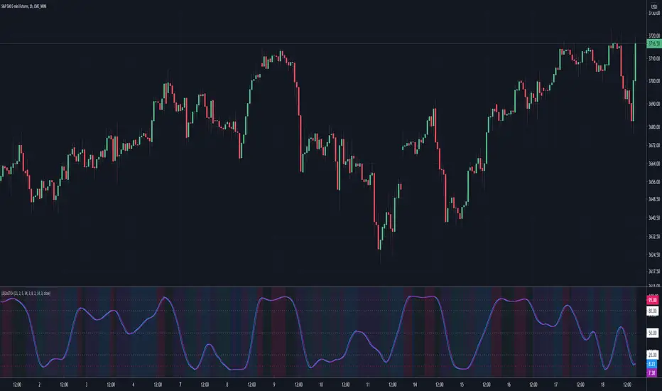 The idea for this indicator came from looking at the Stochastic RSI. The Stochastic RSI takes the RSI reading then applies the Stochastic formula to it - an indicator on top of an indicator. Using this logic, I decided to try using a Stochastic on the existing Stochastic in order to smooth it out - hence the "Double Stochastic". I have also added the option to add RSI on to the indicator as well (with smoothing if you'd like).
