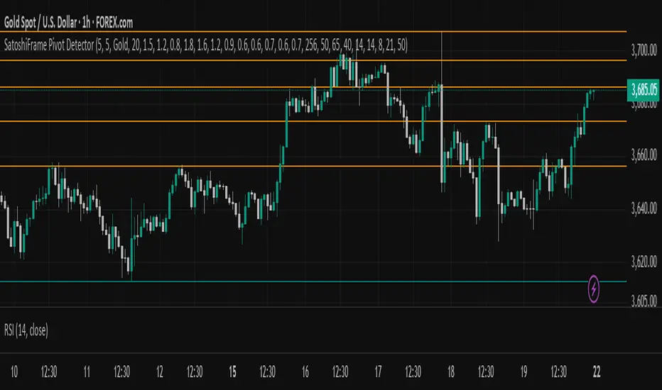 This script detects pivot highs and lows on the chart and plots the last three pivots as fixed horizontal rays that do not shift when the chart moves. It also optionally displays labels for each pivot and can color the levels based on strength thresholds.