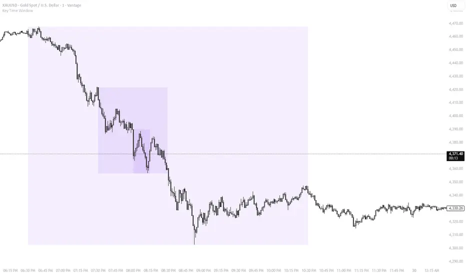 This indicator highlights important global trading sessions and high-probability execution windows using fixed UTC (GMT+0) timings, which align correctly with IST and all other time zones through TradingView’s internal time conversion.