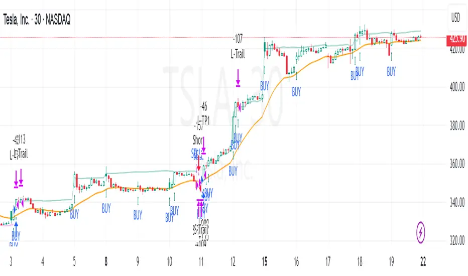 Uses Heikin Ashi candles to filter market noise and identify trend direction.
