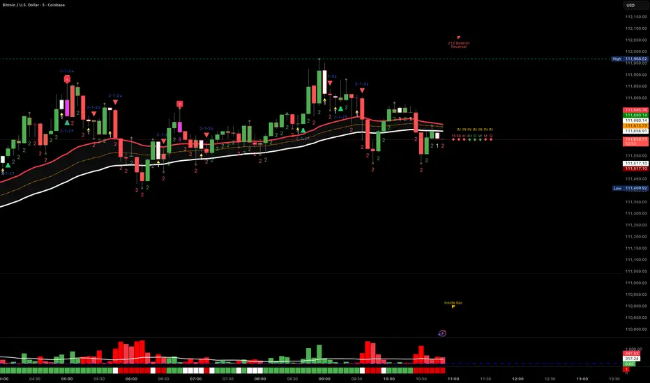This indicator automatically identifies Inside Bars (1) and alerts when price breaks out into a 2-1-2 Bullish or 2-1-2 Bearish setup — two of the most actionable patterns in The Strat methodology created by Rob Smith.