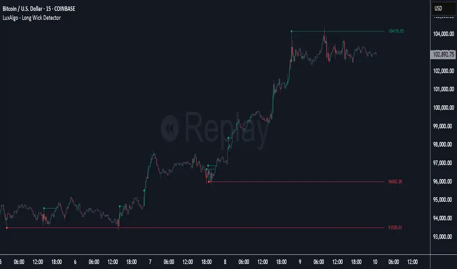 The Long Wick Detector tool allows traders to identify candle wicks longer than a user-defined volatility threshold. This makes it useful for spotting zones with high supply or demand.