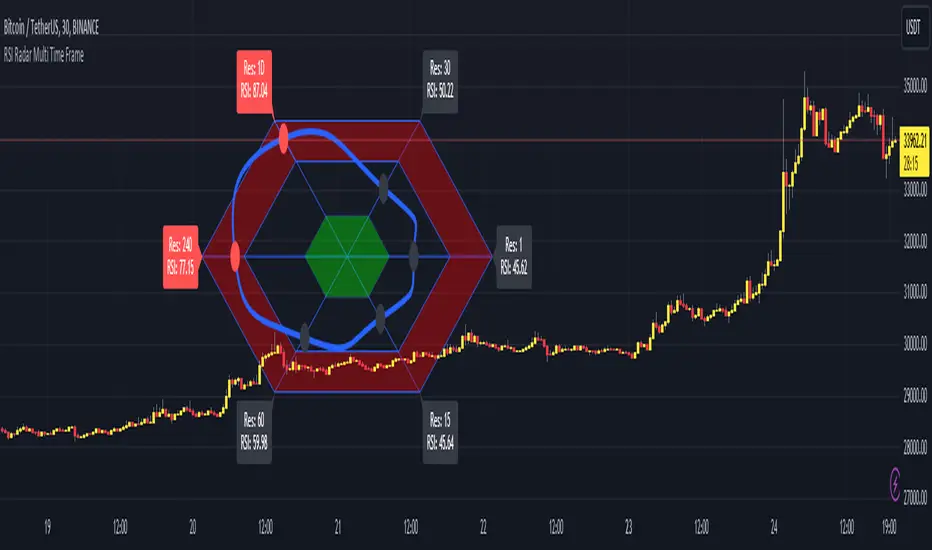 First of all many Thanks to Tradingview and Pine Team for developing Pine Language all the time! Now we have a new feature and it's called Polylines and I developed RSI Radar Multi Time Frame. This script is an example and experimental work, you can use it as you wish.