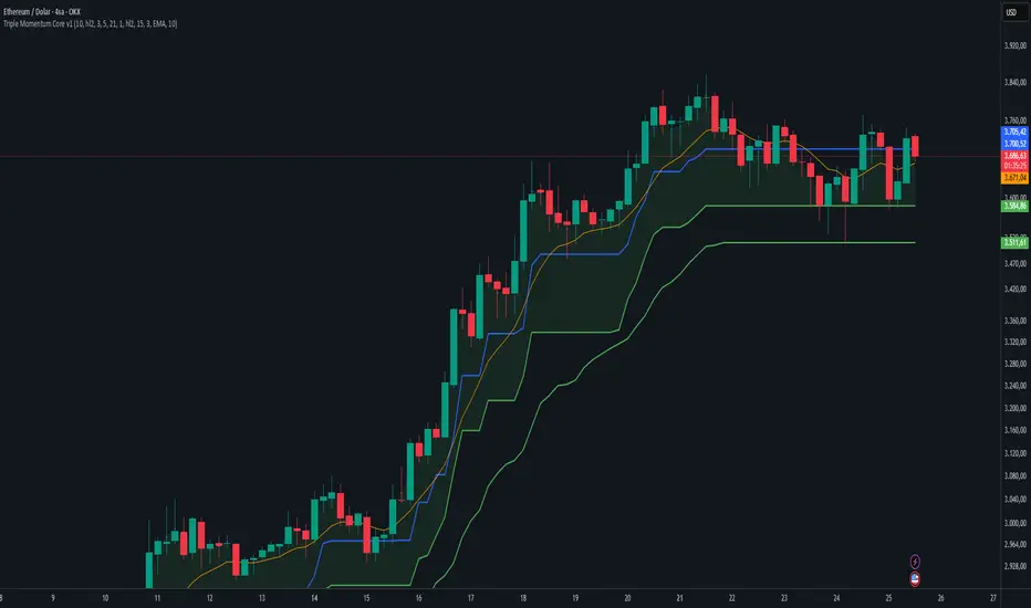 Triple Momentum Core analyzes the underlying wave of price movement through a three-stage system: