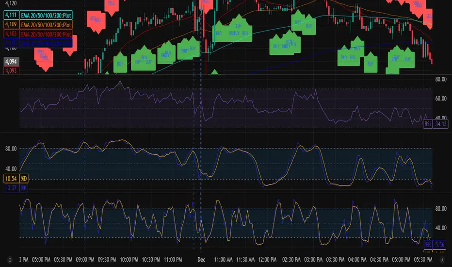 compare between 2 timeframe 1 minute and 3 minute, if both 1 and 3 minute time frame value %K is greater then %D then display BUY text.