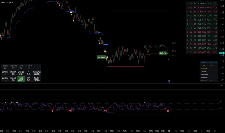 1. Summary Table: Displays overall performance metrics for the indicator over the chart's loaded timeframe and history