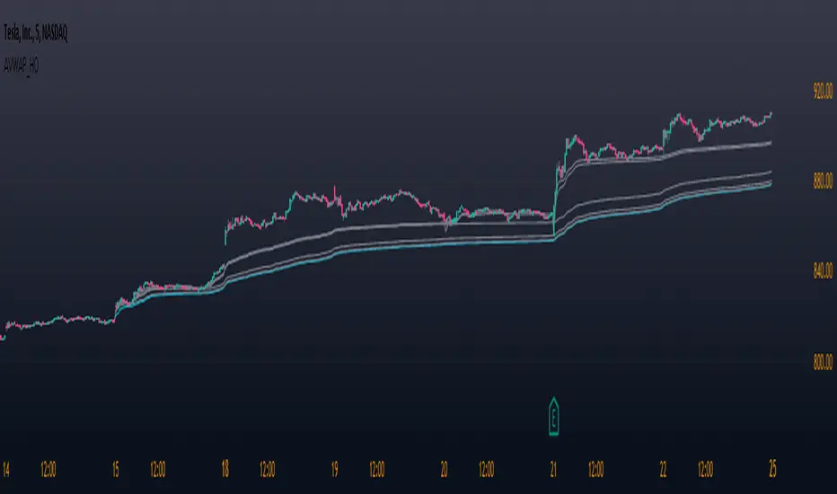 When price taps the base anchored VWAP, a second VWAP is plotted at that point. When price taps the second, a third is plotted, and so on.