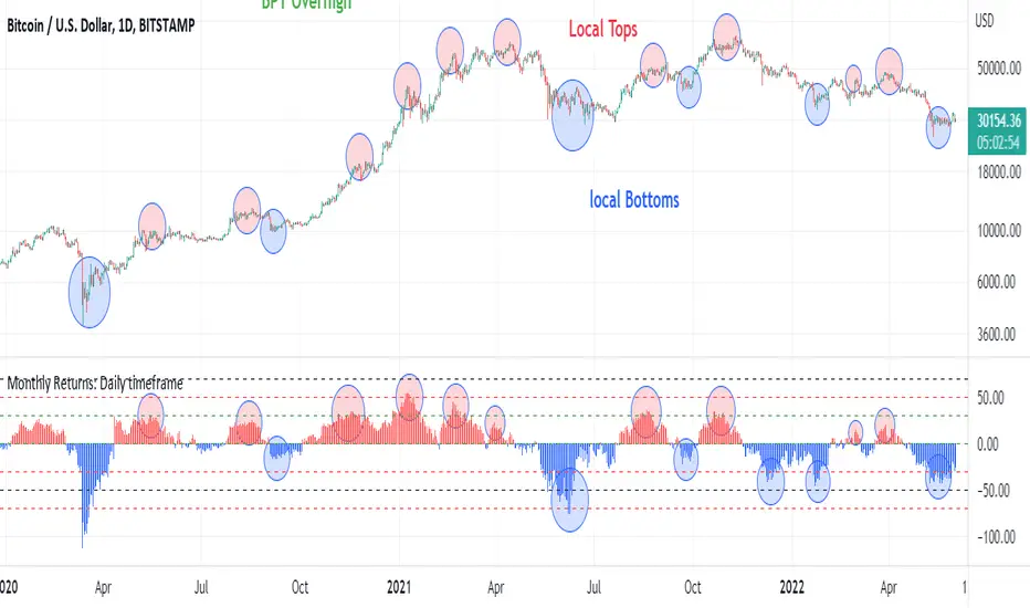 The 30-day rolling returns can be used to gauge market strength and assess over/underheated price action.