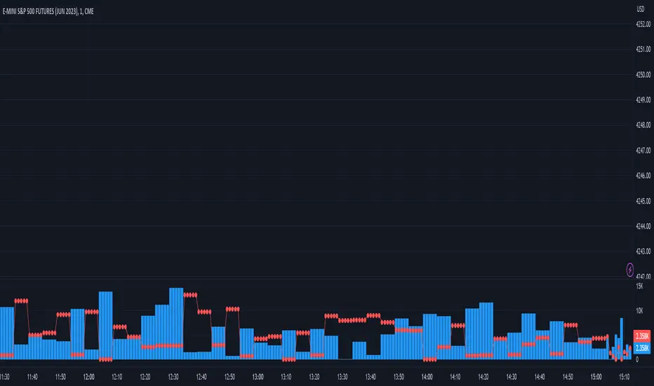 Daytrading For Success's volume indicator with timeframe input selection added. Example shown is 1 minute time frame with 5 minute input selected.