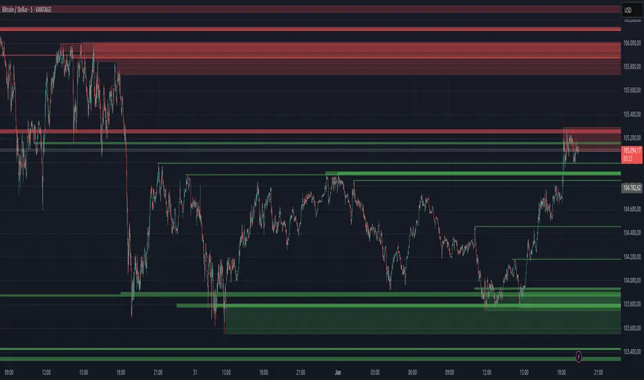Each level is monitored for breakout behavior. If price breaks through a level, it can change its role — a former resistance may become support, and vice versa. After a certain number of breakouts (which you define), the level is considered invalid and is automatically removed from the chart. This helps to maintain a clean visual layout and ensures only relevant levels are shown.