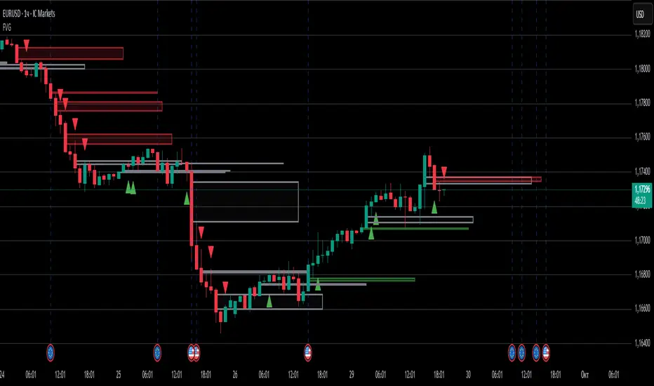 The Fair Value Gap (FVG) indicator is a powerful tool designed to identify price imbalance zones that often act as critical support and resistance levels in the market. An FVG occurs when there is a gap between the high of one candle and the low of another candle two periods away, creating an unfilled price area that the market tends to revisit. These zones represent areas where institutional orders may be waiting and can provide high-probability trading opportunities.