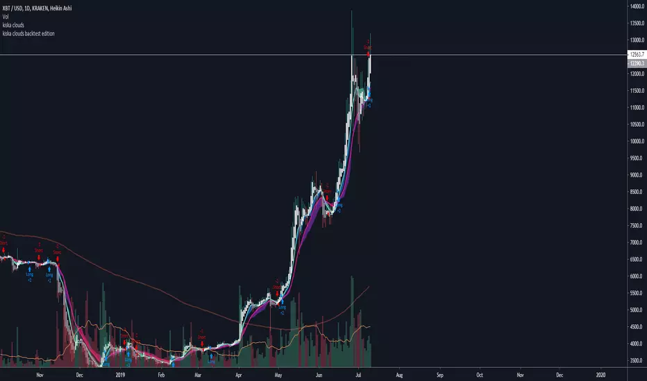This indicator is the backtest version of the kiska clouds (tradingview.com/script/GsEqIJav-kiska-clouds/). For a trial or to purchase this indicator, send me a message on Twitter moonkiska or here on TradingView. You will be granted a 2-3 day trial period to the backtesting strategy.