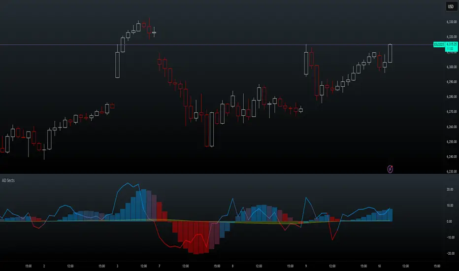 This indicator tracks the breadth strength of the S&P 500 by combining an unweighted Advance-Decline (A/D) Line and a market-cap weighted A/D Histogram across all 11 major S&P sectors.