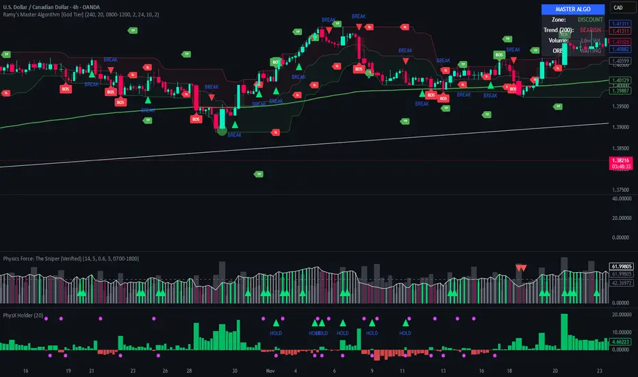 The Flip Exit: Unlike scalping tools, this indicator ignores fading momentum. It signals an exit (Fuchsia Dot) ONLY when the Force Vector completely flips direction (crosses the Zero Line).