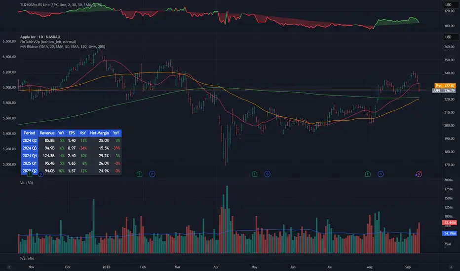 A compact fundamentals dashboard that displays the last **8 fiscal quarters** for the current symbol. It’s designed for clarity (minimal decimals) and flexible presentation, with a dynamic column layout and accurate quarter labels.