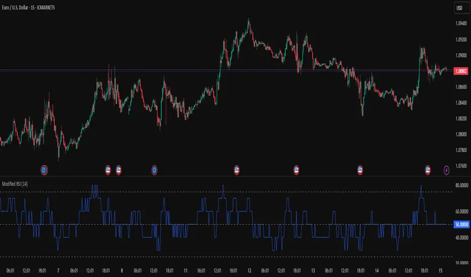 The Modified RSI (Round Number RSI) is an enhanced version of the classic Relative Strength Index (RSI), designed to provide clearer and more structured signals by rounding its values to whole numbers. This modification helps traders filter out noise, making trend analysis and overbought/oversold conditions easier to interpret.